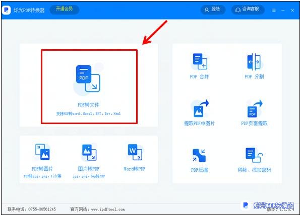 打开pdf转换器,在页面左侧操作栏中选择文件转换格式,选择【PDF转文件】。